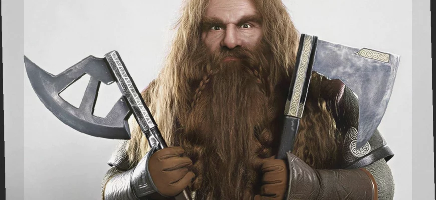 Гимли, представитель королевского рода Дурина, сын Глоина и племянник Оина, известен своей гордостью и чувствительностью к любым упоминаниям о слабости гномов. Под его суровым нравом скрывается безграничная преданность своим спутникам. Он не колеблясь готов встретить смерть бок о бок с Арагорном у Чёрных Врат, несмотря на минимальные шансы на успех.