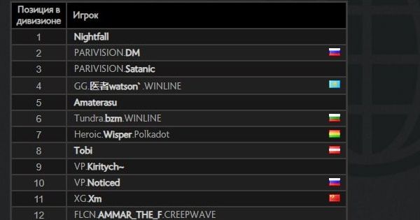 На момент публикации лидерами европейского рейтинга являются: Егор «Nightfall» Григоренко (1 место), Дмитрий «DM» Дорохин (2 место) и Алан «Satanic» Галлямов (3 место).