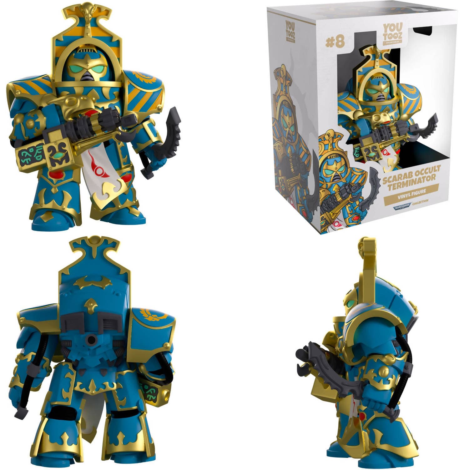 14-сантиметровая фигурка Оккультного Терминатора демонстрирует хаосита, целящегося из массивной пушки, с просперинским хопешем в левой руке. Синий доспех с роскошной золотой отделкой и красными символами на коленях и груди покрывает его тело. С пояса свисает белый табард. Бирюзовые глаза под круглым шлемом внимательно высматривают следующую цель.